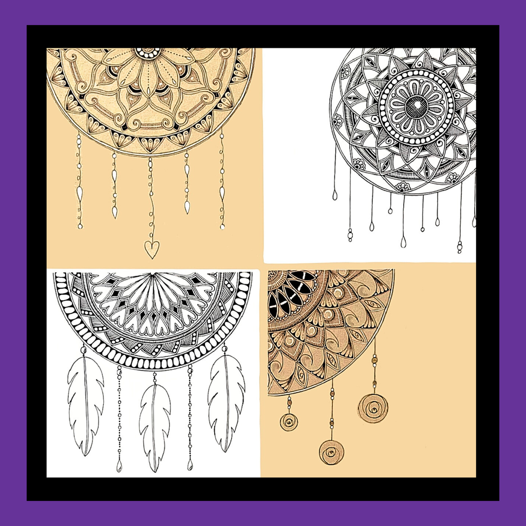 In this workshop I will be talking you through how to create the base template on white card stock and as we all know that no Dreamcatcher is complete without feathers and dangles I’ll be throwing in how to draw them as well. There are few different ways to create Dreamcatchers and I will will be showing you how to create different types so you can continue to create them at home, especially if you get the Dreamcatcher bug like I have and use them in bullet journalling and mixed media projects adding your own preferred patterns.