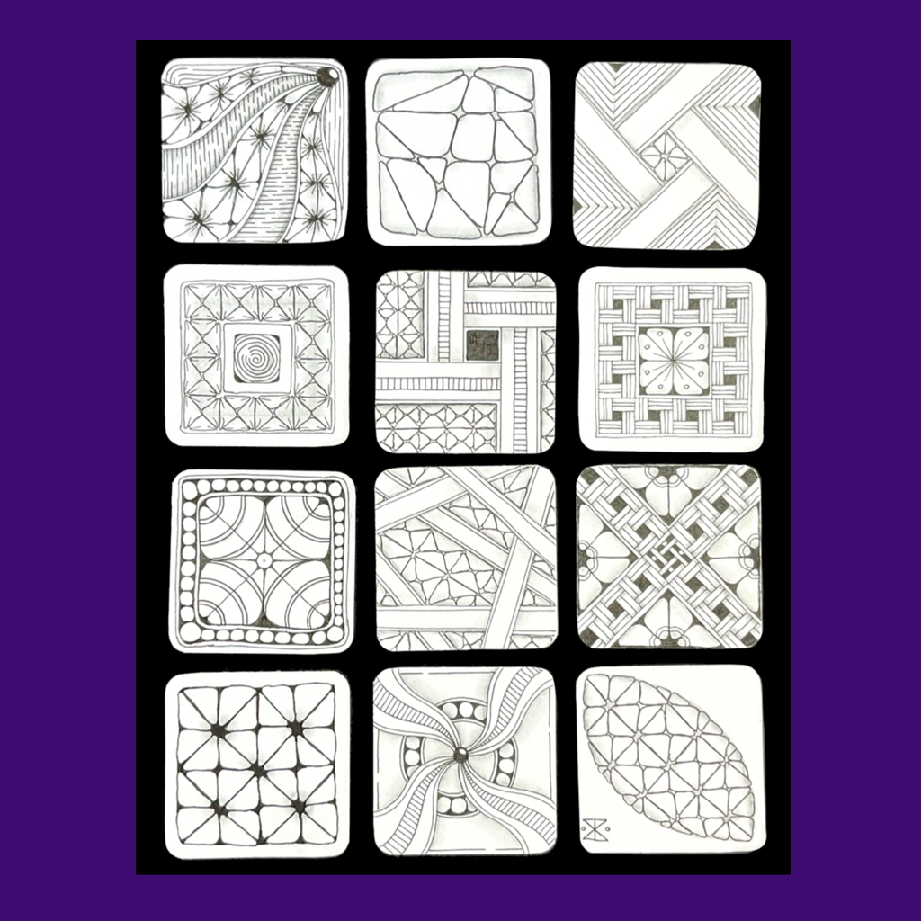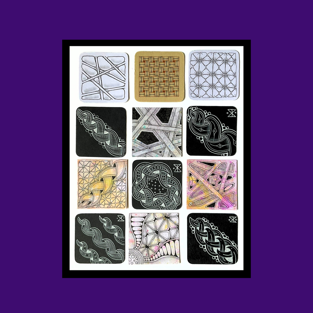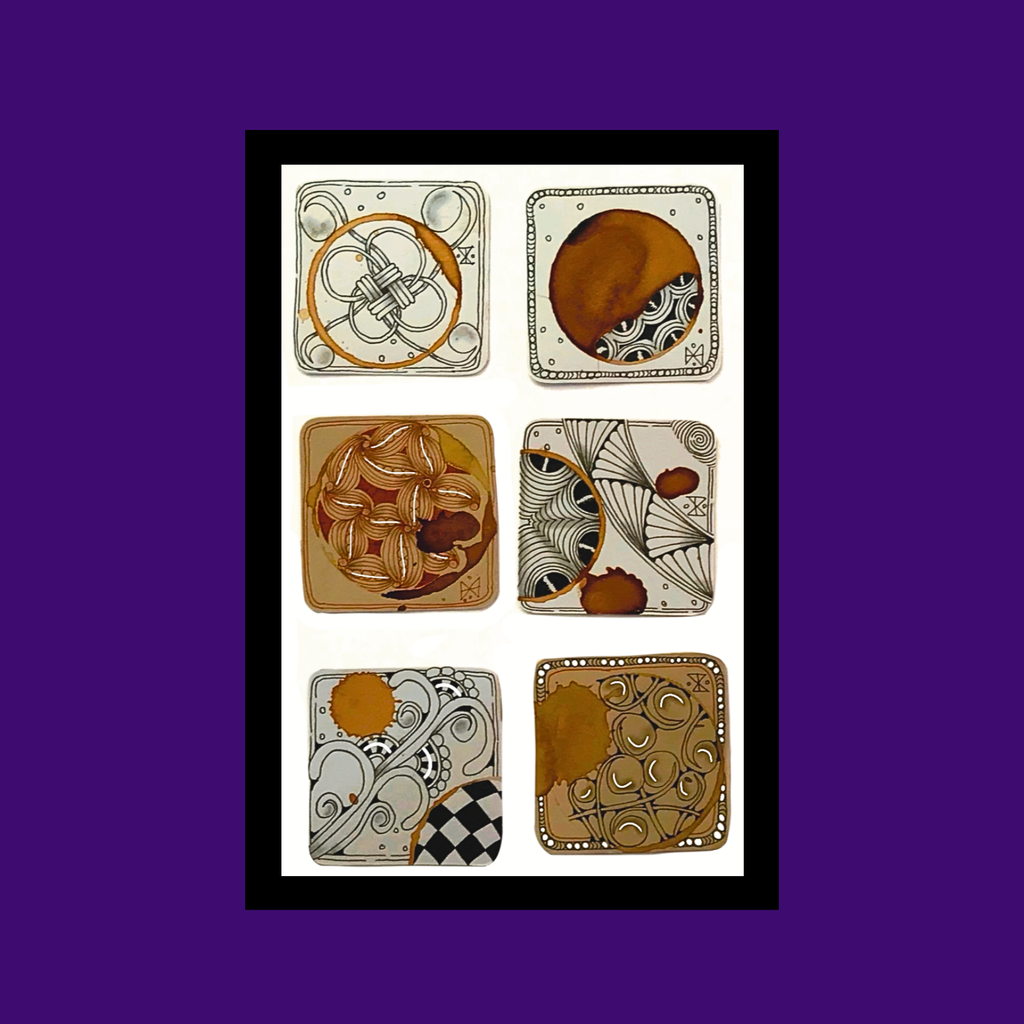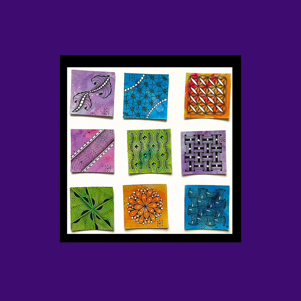 This 2 hour workshop is all about Tangling on small Tiles which are called Bijou Tiles. These cute little Tiles measure 2 x 2 inches and are great when time is a factor and you don’t have long enough to complete a standard size Tile. We will be learning official Tangles,Tangleations and shading using bijou Tiles.