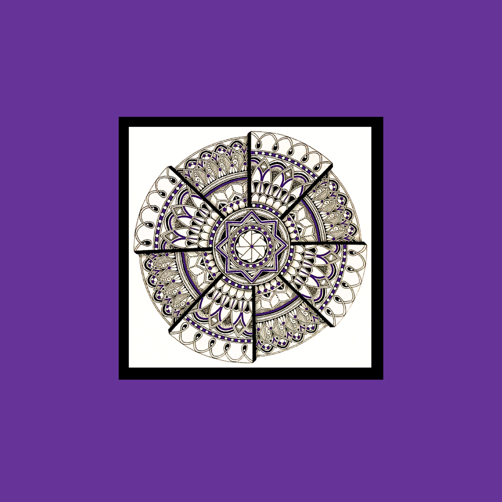 During my Mandala classes and workshops we will be creating hand drawn mandalas on card using fineliner pens and pencils. Hand drawn mandalas are normally drawn using a variety of different sized concentric circles with the same centre point and then divided into equal wedged shaped sections. Starting by drawing a pattern at the centre and gradually radiating outwards drawing repetitive patterns these mandalas can be basic or very complex and intricate in design.
