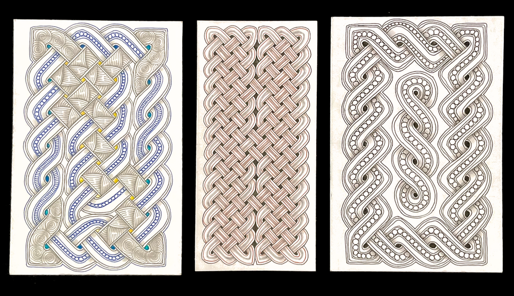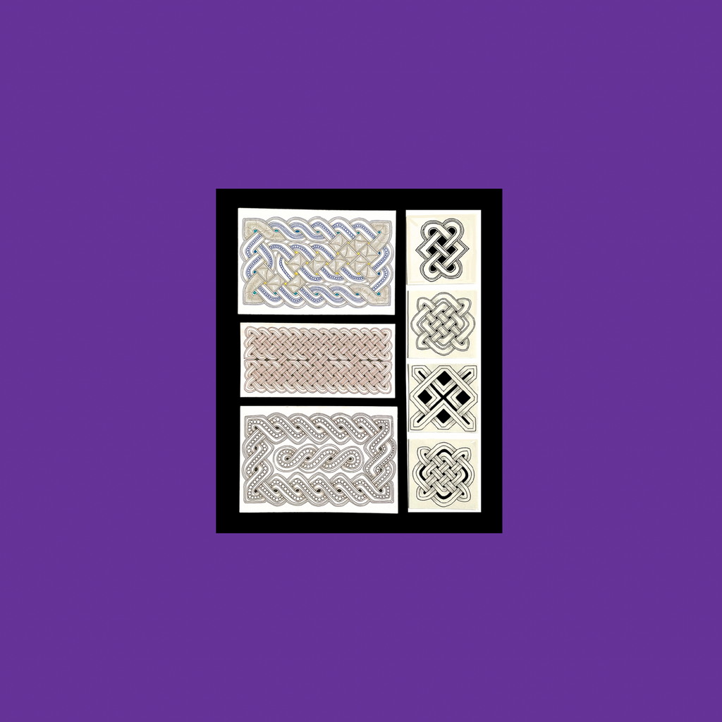 Celtic knots are intricate, looped patterns with no beginning or end, symbolizing eternity, interconnectedness, and the cycles of life. Originating from ancient Celtic art, these designs often feature spirals, interwoven lines, and loops that reflect continuity and the idea that life, death, and rebirth are unending. They are commonly seen in Celtic jewellery, manuscripts, and stone carvings.