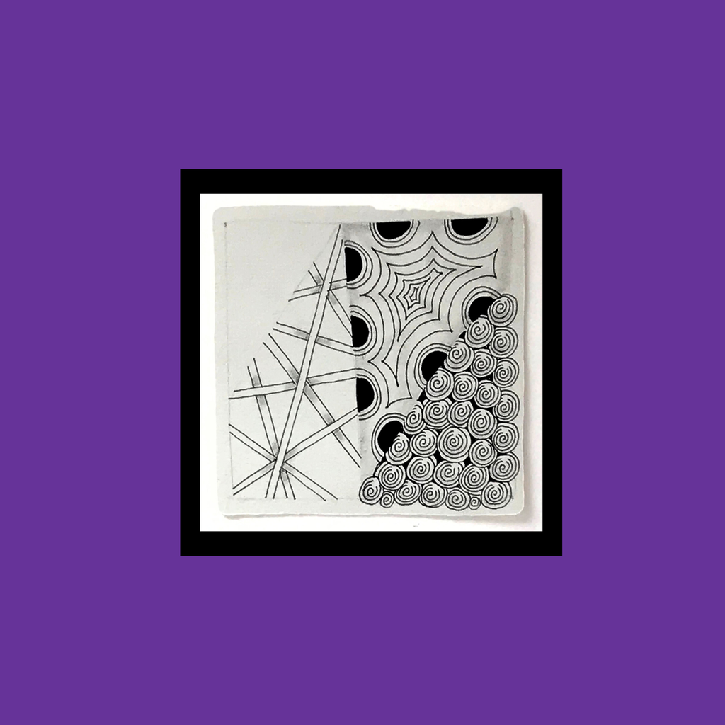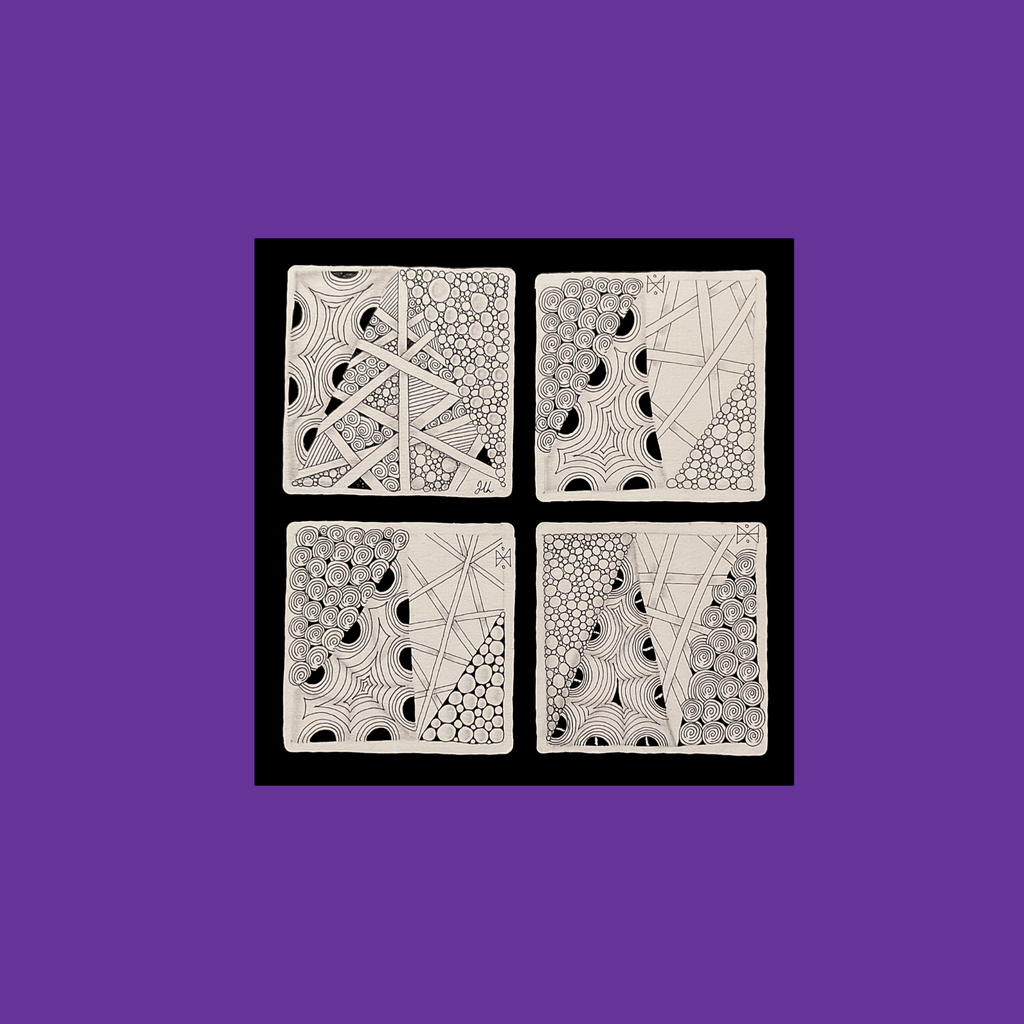 Using repetitive strokes to draw Tangles and focusing on one stroke of the pen at a time you are able to shut off the busy side of your brain, be in the moment, relax and focus on the process and not worry about the outcome.